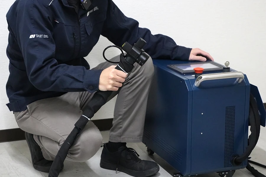 「SCL200」ファイバーレーザークリーナーです。 本機最大の特徴は、連続してレーザーを照射するCW(連続波)方式とは異なり、断続的に照射する「パルス発振」を採用している点です。これにより、熱による母材への影響を極限まで抑え、金型や精密部品などのデリケートなクリーニングに最適です,。 家庭用・業務用コンセント(AC100V)で使用でき、重量約30kgとコンパクト。場所を選ばず導入できる、低コストかつ高性能なエントリーモデルです。