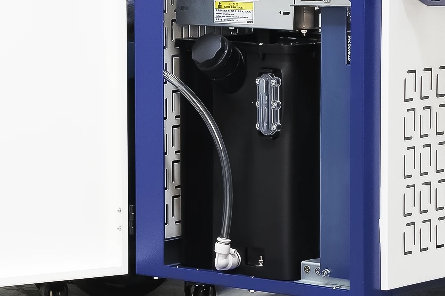高出力レーザーの安定稼働には冷却が不可欠です。SCL2000CWは強力な水冷チラーを本体に内蔵しています。 空冷式と比較して冷却能力が圧倒的に高く、過酷な環境下や長時間の連続使用でもレーザー出力が安定します。工場でのフル稼働や、広範囲のメンテナンス作業に最適な設計です。