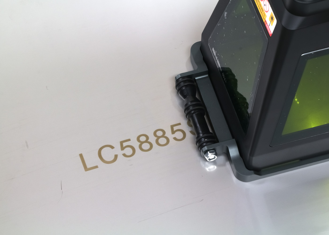 長尺印字カバーを装着することで、本体を横にスライドさせながらの印字が可能になります。手動で動かす際の移動距離とスピードをリアルタイムで検知し、レーザーの発振タイミングを同期。スライド速度に関わらず、印字の密度とアスペクト比を常に一定に保ちます。